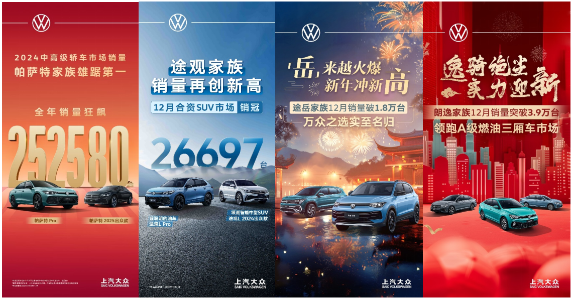 明星居品途不雅L Pro、帕萨特Pro智能化迭代升级,跑出销量“加快度”。帕萨特家眷12月销量超3.2万辆,全年交出超25万辆的年终答卷,在中高等轿车阛阓独占鳌头;途不雅家眷12月销量再改进高,突破2.6万辆,担当结伙SUV阛阓销冠。