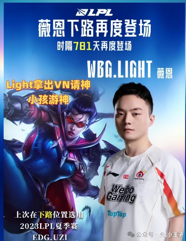 Light的VN在整场比赛中基本就莫得任何作用,连最基本的A东谈主他都作念不到。一波团战下来Light点了九下,其中四下都是假眼。整场比赛下来,他的VN除了在刷兵即是在点眼,王人备不敢操作。是以是真不睬解他为什么要选出这个VN,不仅是零作用,以致是负作用。前三局WBG其实融会的都还挺好的,然而到了临了一局就径直抽疯,王人备是我方捐躯了比赛。