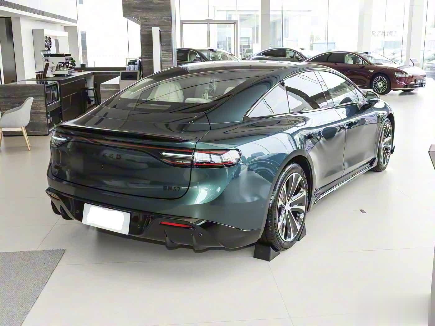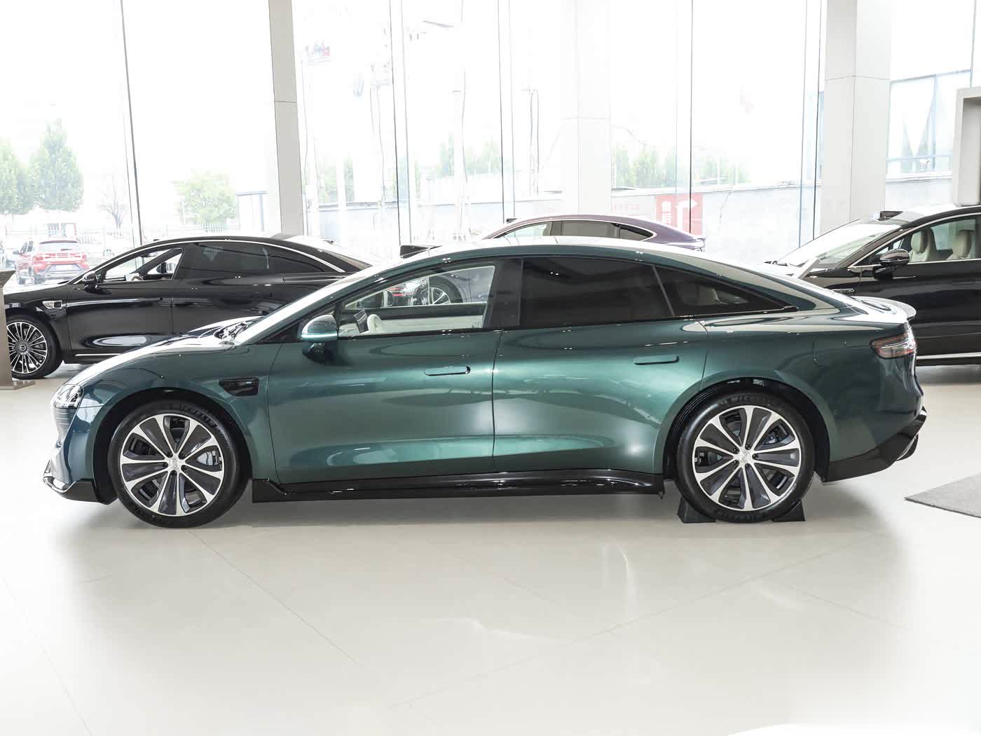 再来看车身侧面部分,车身侧面线条畅通舒展,溜背式轿跑造型突显畅通性能。无框车门与遮掩式门把手议论优化风阻推崇,圭臬19英寸双五辐星芒轮毂提供霸气视觉遵守,同期可选装20英寸低风阻轮毂以知足个性化需求。车身尺寸为4971mm(长)×1963mm(宽)×1474mm(高),轴距达到2950mm,确保车内浩荡的乘坐空间。遮掩式门把手不仅好意思不雅,还能镌汰行驶时的风阻通盘,提高续航智商。车身轮廓修长,侧面线条从车头蔓延至车尾,营造出中大型轿车的优雅气质。这种议论在提高视觉冲击力的同期,也优化了空气能源学性能,使车辆在高速行驶时愈加踏实。