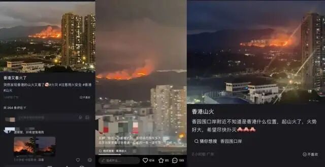 2月26日晚,多名深圳市民发布视频称,香港发生山火。火势连绵上百米,还是烽火数小时,深圳多处可见。