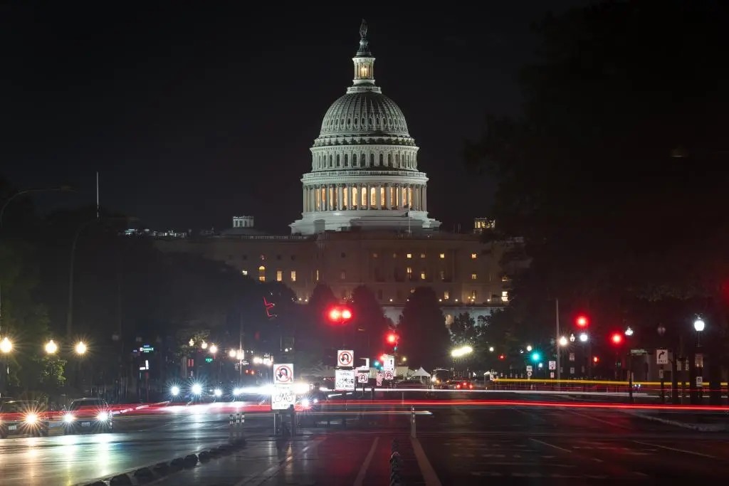 这是7月2日晚在好意思国王人门华盛顿拍摄的好意思国国会大厦。新华社记者 胡友松 摄